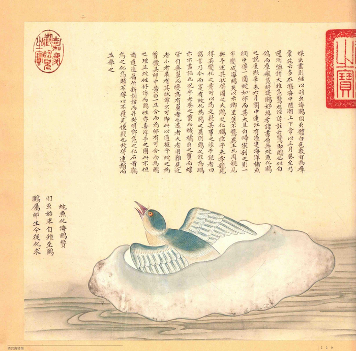还有的化生组合,并不算正规记载,而源自某些具体案例。康熙辛未年(1691年)六月,福州连江县的渔民捞上来一只大水母,剖开一看,竟有一半身体变成了海鸥!一位叫王允周的人亲眼得见,为聂璜讲述了此事。聂璜遍查古书,没找到“水母能变为海鸥”的记载。但他自己分析,此事有三大合理之处:第一,水母喜浮于海上,海鸥也喜欢。它俩在习性上沾边。第二,水母质地类似蛋黄蛋白,孵出鸟来也是有可能的。第三,蚕化为蛾,不也是没翅膀的变成有翅膀的吗?聂璜不禁被自己的机智折服,挥毫画了一幅“ 鱼化海鸥图”,赞美了一番造化神奇。