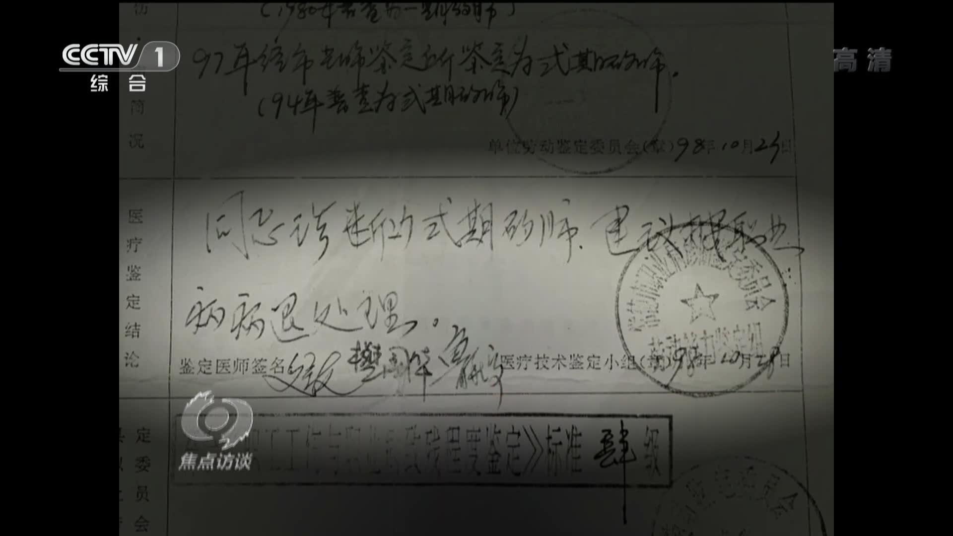 湖南常德市国企改制专项工作组办公室常务副主任 傅奉义:实际上,我们以职业诊断书为基本依据,同时也关注是不是职业病?有没有证据链条?我们有一整套的东西,包括工资表、有关工伤事故的安监局的有关东西、在安全事故中是一个什么角色等等,尽最大努力去保证真实性。