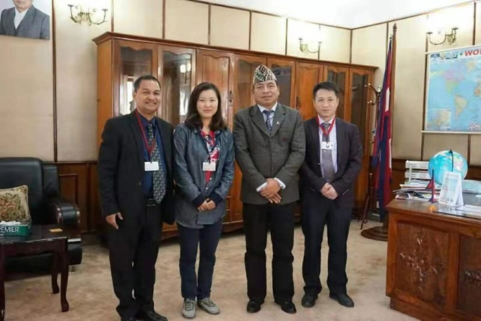 慢慢地,宁飞感到自己跟尼泊尔接上线了,尼泊尔总理称他为“民间大使”。这几年,尼泊尔换了三任总理,宁飞都与之交好,甚至成为其座上宾。他翻出照片,“这是尼泊尔的副总理,这是总理的外事参谋,这是电信部长,当时我们在谈一个卫星的发射项目。”