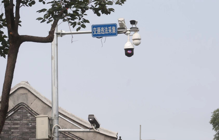 雨儿胡同实现不停车改造后,加装了一些交通执法设备。新京报记者 王贵彬 摄