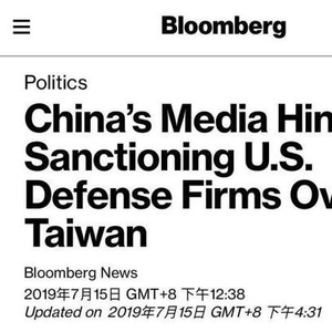 7月15日的报道中,彭博新闻社就直接点名称:“中国官方媒体提出了对包括美国通用动力、霍尼韦尔、雷神、奥什科什在内的美国企业的强烈反对,正如中国外交部警告的那样,如果潜在的20亿美元对台军售继续进行,这些公司将受到制裁”。