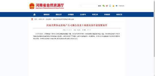 2011年7月12日,原国土资源部通报了“河南光辉伟业房地产开发有限公司擅自改变土地使用条件建别墅案”,并将此案列为2011年第二季度挂牌督办案件公开曝光查处。