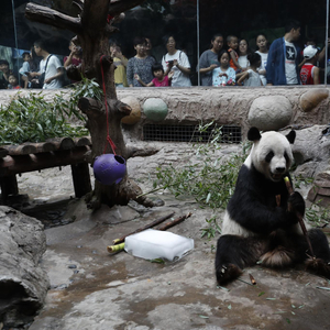 据了解,饲养员为动物准备了水果、应季蔬菜、青饲料等防暑饲料,大熊猫、北极熊、棕熊等动物还可享用绿豆汤、固体果珍饮料等“特调饮品”。犀牛可以享用多汁防暑的水果饲料;猩猩馆饲养员会自制一些小果冰,让大猩猩抓在手里玩耍,在降温的同时,对动物抓举进行训练。据悉,今年北京动物园为动物准备的防暑降温饲料包括12种水果、28种应季蔬菜和3种青饲料,其中,水果每日供应量约704公斤,单是西瓜的日供应量就达到332公斤。