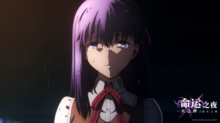 正在上映的《迷失之蝶》是该游戏最终路线“HF线”动画剧场版全三部作品中的第二章,通过女主角间桐樱的视角,讲述了御主和英灵为了得到可以实现一切愿望的圣杯而相互厮杀的一场战争。