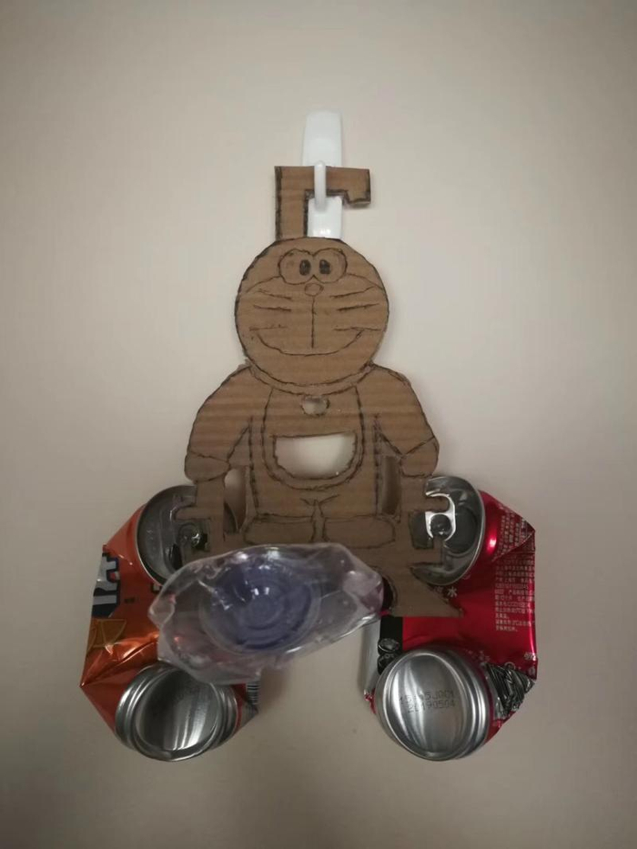 千万别觉得只有女人对垃圾分类有审美要求,魔都的男人热衷起来一样要命。海顿家添置了两只垃圾桶,一个干垃圾桶,一个湿垃圾桶,再放一个可回收垃圾桶似乎太挤了。鉴于他家的可回收垃圾大都是易拉罐和矿泉水瓶,海顿顿生一计,动手做了一只可爱的多拉爱梦纸板挂在墙上,这是为可回收物度身定做的专用纸板。