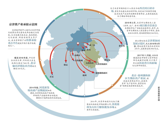 西直河石材城疏解与香河的承接,只是京津冀协同发展中产业疏解的缩影。这五年来,动批部分商户落户河北白沟、天津西青区,曹妃甸迁来首钢京唐公司,沧州盐碱地上建起北京现代汽车城,“中关村”招牌津冀随地可见。