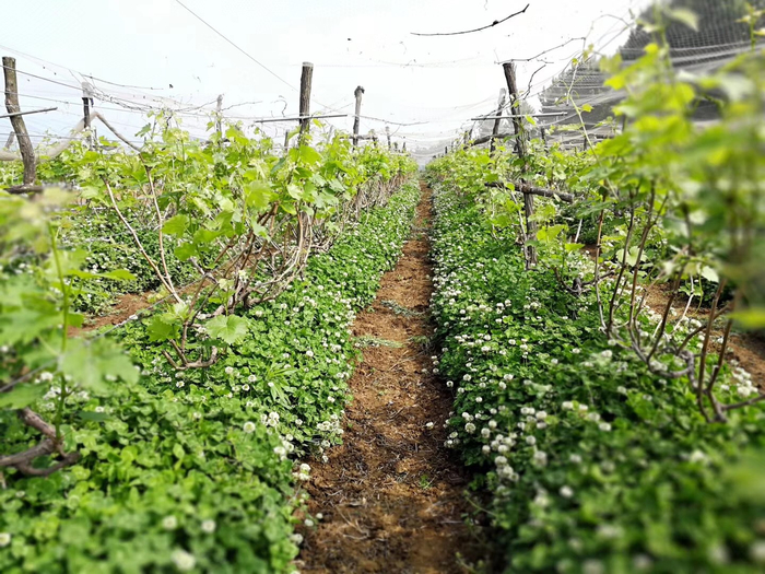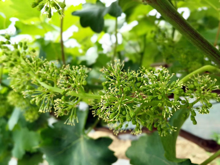 “葡萄长的快,露地的花序已经开始分离,避雨的花蕾也正努力绽放,这春末的好时光啊,我和虫子一样忙。”受访者供图