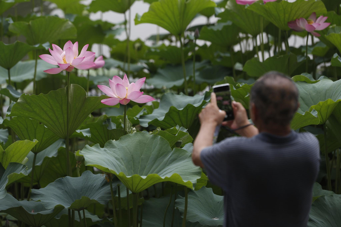 市民拍摄荷花美景。新京报记者 侯少卿 摄