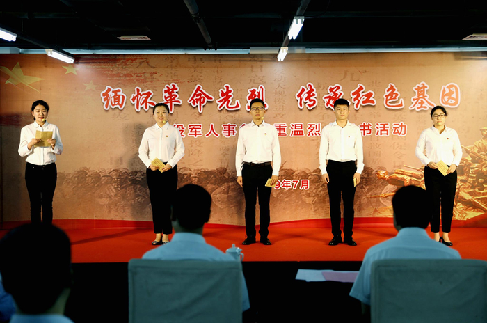 7月18日下午,退役军人事务部开展以“缅怀革命先烈、传承红色基因”为主线的“重温烈士家书”活动,部党组书记、部长孙绍骋,部党组成员、副部长钱锋,中央军委政治工作部主任助理兼退役军人事务部党组成员、副部长方永祥,部党组成员、驻部纪检监察组组长林国耀,部机关全体党员,直属单位处级以上党员以及部管社会组织主要负责同志参加活动。