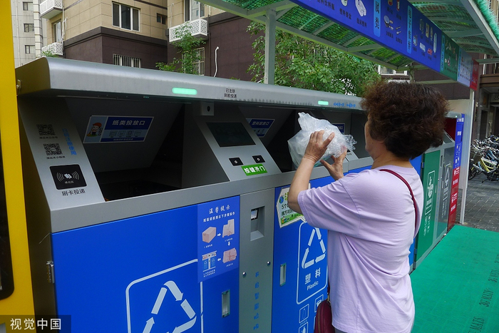 新风街一号院小区智能垃圾箱率先试用。图源:视觉中国