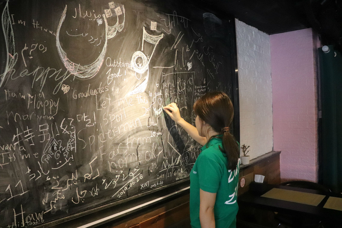 ZAM ZAM的营业时间比一般餐厅长,从中午开到深夜,因为顾客中有许多人会在晚上8点以后,约上三五好友,来到这里聚会休闲。“没指望靠它赚多少钱,只要不亏损。”于敏晖说,“主要是挺喜欢这样一个小店,让人待着舒服。我还能热热闹闹地在这里招待朋友。”ZAM ZAM所营造出的舒适而放松餐厅氛围最适合举行小型聚会,忙碌了一天的上班族和学生党们可以在这里放慢脚步,悠闲地享受美食与夜晚,结交来自世界各地的朋友。