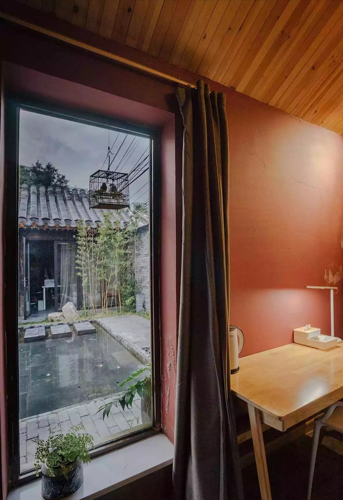 “我宅”是一所“国学”民宿,坐落在极富书香气息的国学胡同内,民宿旁边就是国子监和孔庙。这里的房间都取自朝代的谐音,比如“琴酣”取的是“秦汉”的谐音,“棠颂”则与“唐宋”同音……