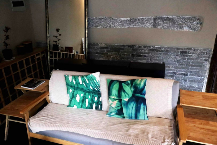 房梁和东西两侧的墙壁基本保留老屋原貌,墙上灰青色的城砖是老房主留下的,城砖的纹路上,有数不尽的历史兴衰。房内还摆放着古琴,闲暇时分,轻抚琴弦,仿佛梦回西汉,司马相如正为卓文君深情弹奏《凤求凰》。