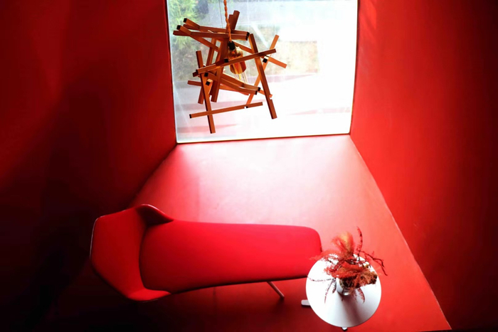 位于“国学”民宿附近的“宅GD”是“我宅”最新打造的建筑,虽然都坐落于国学胡同,但主打休闲娱乐的“宅GD”的建筑风格更具现代感。走进“宅GD”的白色大厅,不经意间抬头仰望,会发现意外的惊喜。