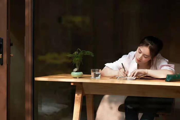 2018年的夏天,她来到了“我宅”。在“国学”民宿里的“棠颂”,她和丹青谈笑风生。谈到对“国学”民宿的看法时,马思纯说,“在北京,你只有在四合院才觉得,嗯,这是北京。”