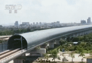 与以往铁路开放性的金属声屏障不同,此次采用的是全封闭拱形声屏障,因为拱形受力更均匀,能够抵抗14级台风。