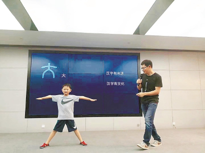在“节气导师”刘良鹏的带领下学习汉字的起源。资料照片