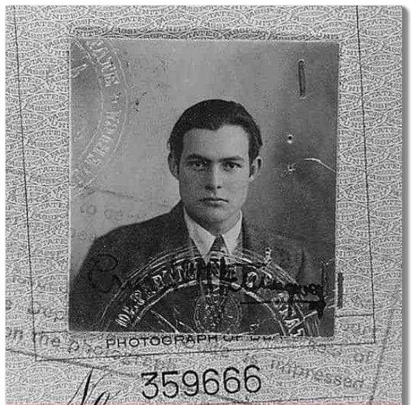 海明威1923年的护照照片。