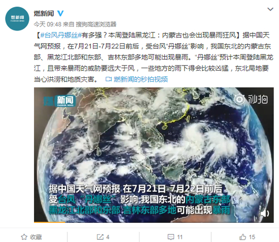 视频|台风丹娜丝本周登陆黑龙江:内蒙古也会出现暴雨狂风