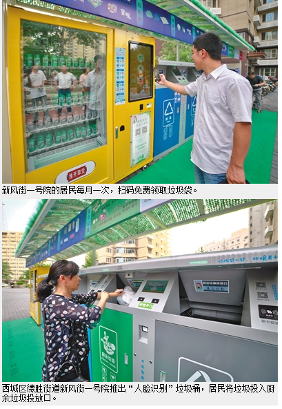 北京不少小区推出了智能垃圾桶,以西城区新风街一号院小区为例,该小区作为德胜街道首个试点,选取16个点位投放了29组“人脸识别”智能垃圾桶。完成注册的小区居民在投放垃圾时,垃圾桶自动“刷脸”识别身份后打开桶盖,并为垃圾称重积分。智能垃圾桶多数分为厨余和其他两类,分类最细的投放点设有纸类、塑料、金属、纺织品、厨余、其他、有害7个垃圾类别。