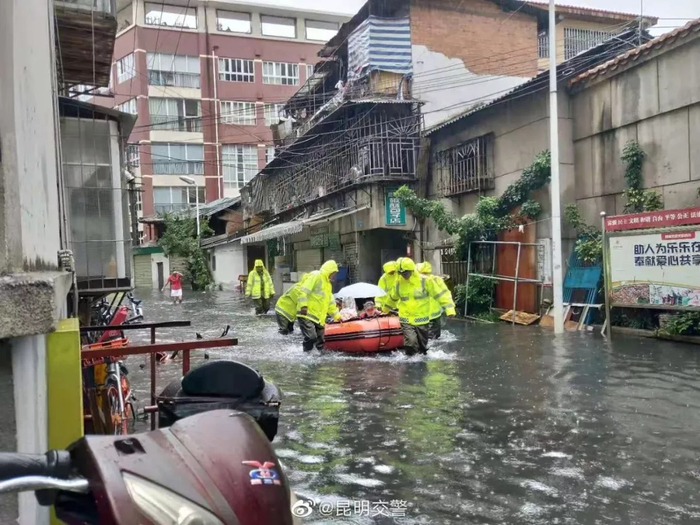 原标题:昆明30年来最大降雨:61车被困,消防接逾400求助电话