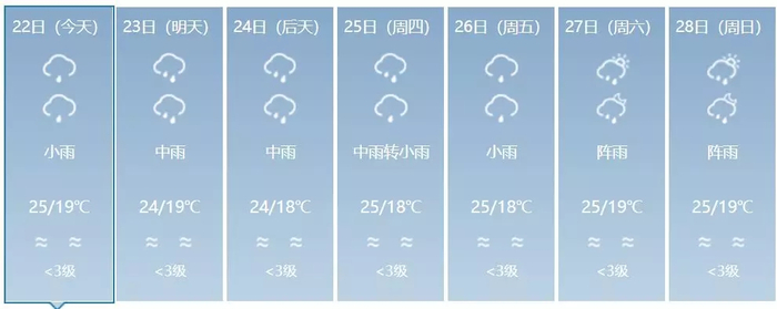 玉溪:小到中雨转小雨,19~25℃