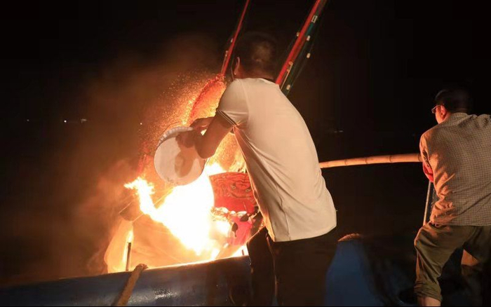 而等到大暑船被拖行至海上后,送船的人将汽油泼到大暑船上并将其点燃,大暑船在海上随风自行焚烧,直至消失在大海中。