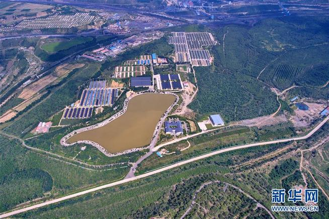 这是2018年8月1日无人机拍摄的位于山西省朔州市的安太堡露天煤矿复垦区。(曹阳 摄)