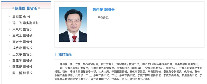 目前浙江省省长是袁家军,副省长有8人,陈伟俊是最年轻的一位副省长。