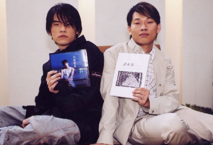 周杰伦与方文山早年照片。