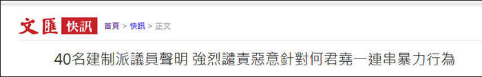 23日晚间,40名香港建制派议员在多家港媒发布声明,强烈谴责激进暴力分子恶意针对何君尧议员的一连串违法暴力行为。