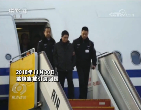 2018年11月30日,姚锦旗被引渡回国,从他触网到被引渡回国,只用了短短44天,就走完了通常需要数月甚至数年的引渡法律程序。