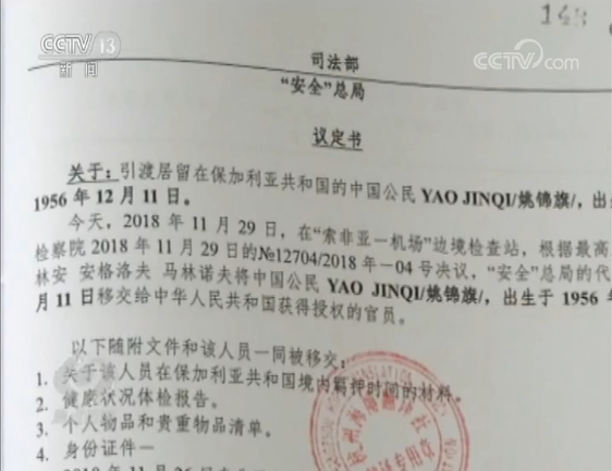 2018年11月26日,保加利亚索非亚地方法院作出裁决,同意引渡姚锦旗,并启动了引渡简易程序,最大程度简化了流程。