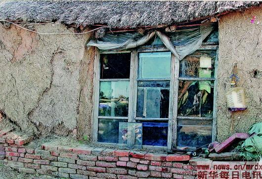 福祥村村民曾经居住的泥草房,透风漏气。(老照片翻拍)