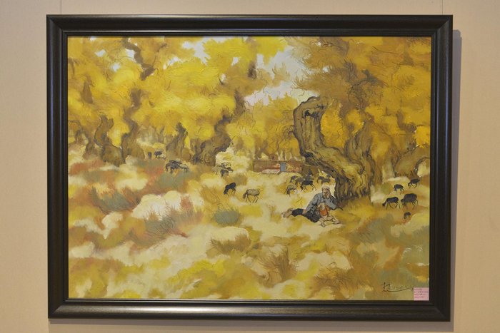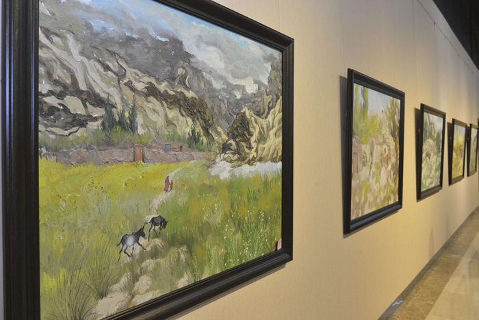 新疆和田画家热衣拉木女士专题油画展览在首图第二展厅展出。图/首都图书馆