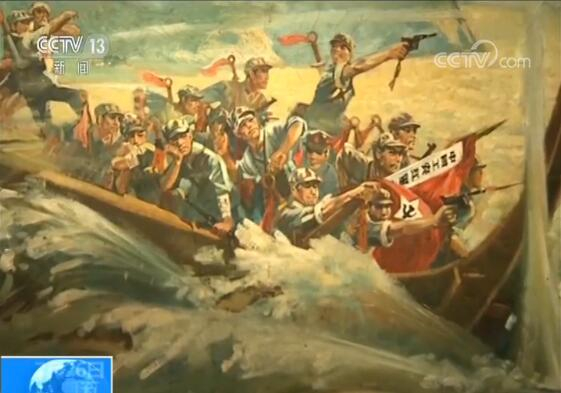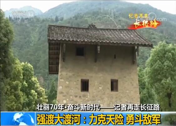 央视记者 闫乃之:这里就是红军强渡大渡河时的渡口。当年水面比现在更加宽阔、河水更加湍急。所以红军的船只从这里出发之后,在水流的冲击之下只能向斜下方漂进。但是在红军登陆的地点,您看画面中有几栋房子的地方,就是国民党军队部署火力的地方。红军一边强渡天险,另一面要与敌军作战。