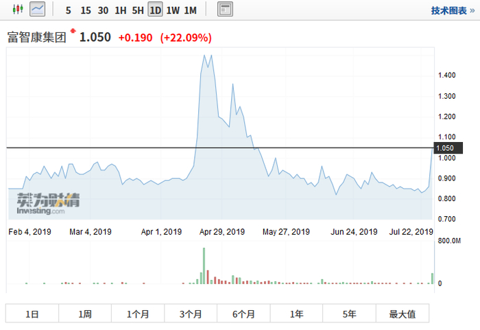 受到此消息影响,港股富智康(02038.HK)今日大涨22.09%。(2013年5月,富士康国际控股有限集团发布公告,宣布公司更名决议获得股东大会全票通过,该项决议建议将公司英文名称由“Foxconn International Holdings Limited”更改为“FIH Mobile Limited”,并采纳“富智康集团有限公司”为公司正式中文名称。)