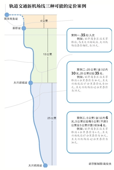 案例二是丽泽商务区站和草桥到大兴机场35元,大兴新城站到大兴机场站25元。