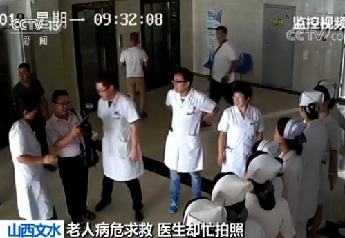 央视网消息:事情发生在本月15日的山西省吕梁市文水县。起因是一位病危住院的老人,家属在其病情危急时四次向医生求救,然后当值医生却因与整个科室的同事们忙着拍合照,迟迟未予及时施救,最终遭到了家属的投诉,并引发纠纷。此前一天,也就是7月14号的晚上,84岁的老人 康金莲 住进了文水县人民医院接受救治。但次日(15日),康金莲老人经抢救无效临床死亡。家属认为期间该科室的医生只顾着集体拍照而影响了救治,从而导致了医患之间的纠纷。