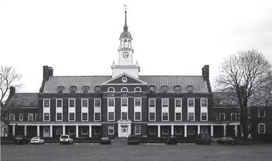 在普林斯顿一个知名的高等研究所(图 5)里聚集了很多重要的、年长的以及年轻的研究员在搞这些东西,所以我就请求到那儿去做博士后。