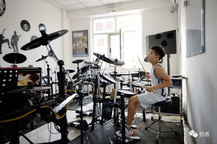 △ 宇飞在一家培训班上架子鼓课。