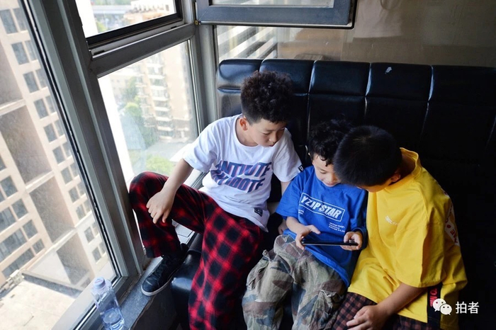 △ 孩子们课间聚在一起观看街舞综艺节目,又又坐在一边大口喝矿泉水。