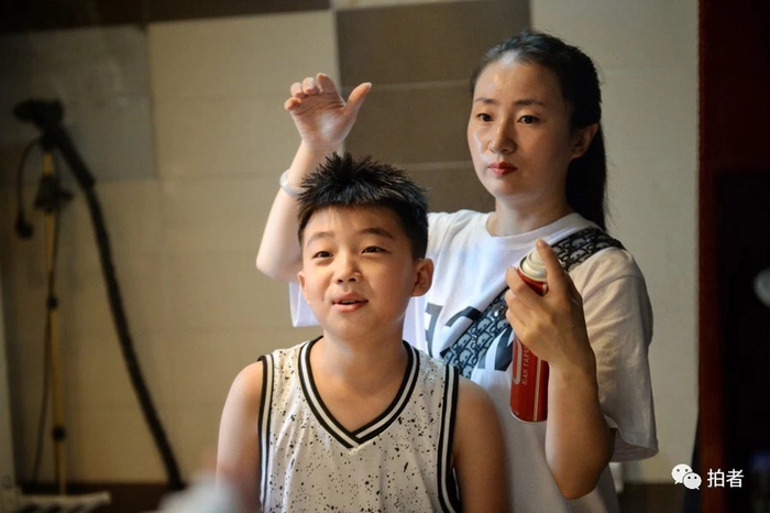 △ 出门前,宇飞的妈妈为他打理发型。