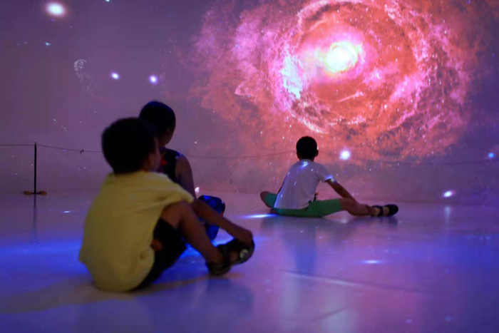 目前,世纪坛内最火的展览就是“HELLO火星”多媒体互动体验展了。该展览使用实物展示、全息影像、数字投影、显微镜等多种方式,全面呈现了火星与太阳系科学知识、人类认识火星的历程、人类探索火星的航天器、登陆与改造火星的畅想等,带给观众全新的观展体验。