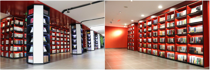 如果我们有幸见证历史长河中的片段节选,会不会对百年人生敬畏且谦卑。钢筋水泥的框架,平稳上行的电梯。透过玻璃窗,书籍累砌的中式建筑形态显得“绘声绘色”。宫墙红、城墙灰,站在楼宇的另一侧即可目视建投书局的底色。不落窠臼的中式设计,试图解读紫禁城、正阳门、老式胡同之于北京的意义。亦或许,包含书局在内的建筑与文化就是北京本身。