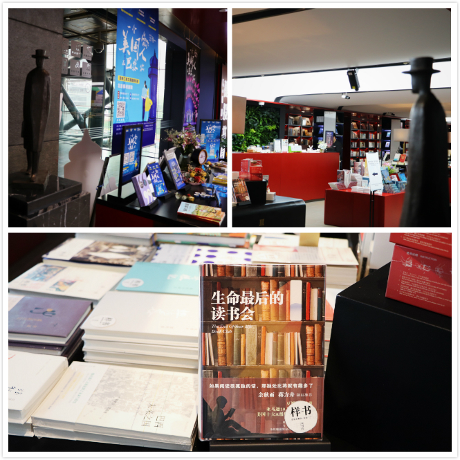 若说“无序”,建投书局当真是“无序”得冲破想象力。民国“文人墨客”望向的一本书是《生命最后的读书会》,由美国作家威尔•施瓦尔贝所著,出版于2013年8月,讲述的是威尔得知母亲身患胰腺癌晚期后,一直不知如何与母亲交流,直到一天他们开始阅读相同一本书,两人定期“举办”的读书会就此开始了……