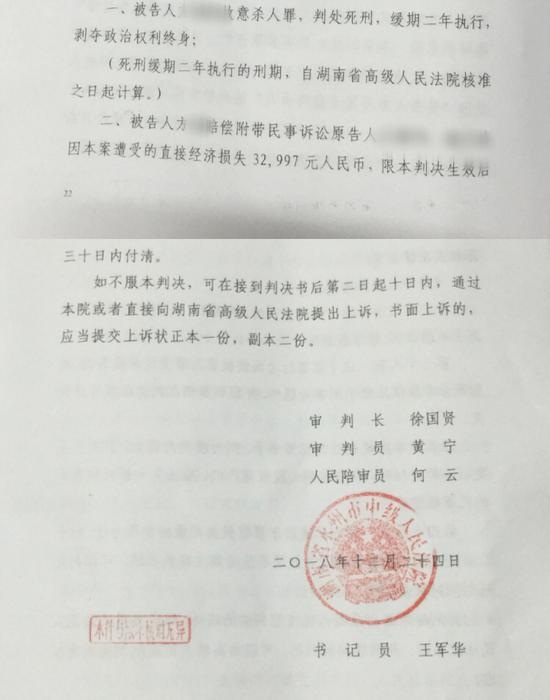 “判处死刑,缓期两年执行,这不是我们想要的结果,应改判死刑,立即执行”,宣判后,2019年1月25日,王先生向湖南省人民检察院递交了刑事申诉书,申诉理由为“量刑不当”。