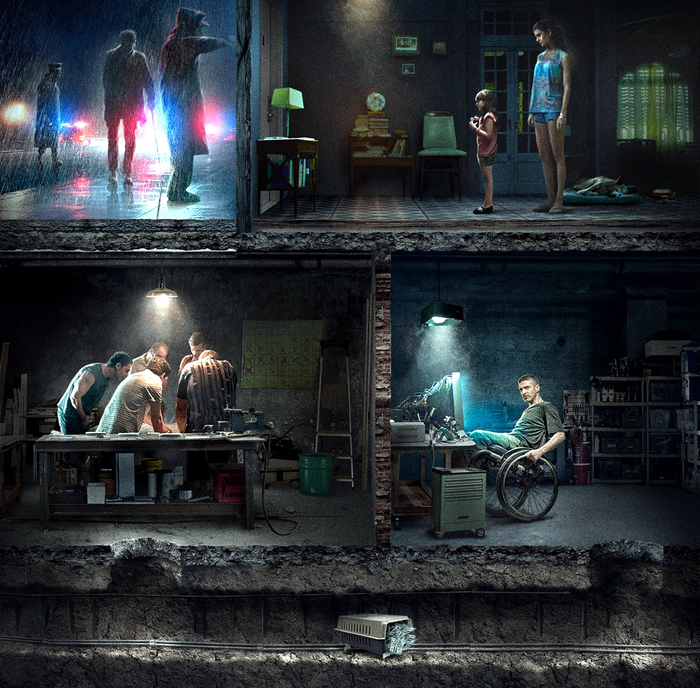 《隧道尽头》中,男主角华金是一位智商爆表的技术宅,因车祸失去双腿后,只能坐在轮椅上活动。直到神秘的女租客和她6岁女儿的到来,让华金死水般的生活产生了波澜,更让他意外发现房子下面竟有一条不知通向何方的隧道,华金深入隧道一探究竟,不料,竟然发现隧道尽头是一群穷凶极恶的银行劫匪……