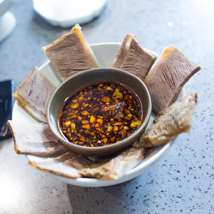 这是一家诚意十足的湖北土家族面馆,今年3月在前门东的西兴隆街开业。从湖北翻山越岭运来的山羊、黑猪肉肉质紧实,细可穿针的鸡汤银丝面汤头熬足了6小时,用糯米自然发酵超过半个月的米酒口感醇正,就连听起来非常简陋的“泡面”,搭配的食材品质也相当高。
