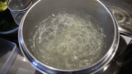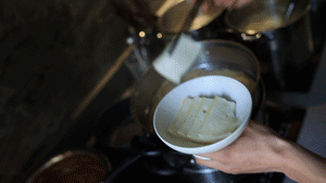 如果客人不爱吃辣呢?养胃的文火鸡汤银丝面一定是最佳选择。整两只肥东老母鸡,要在锅里炖足4小时。银丝面是挂面,细得可以穿针。因为本身带盐,所以面里不需要再加多余的调料。上桌了!香浓的鸡汤盛在茶壶里,客人可根据自己的喜好,添进挂面里。